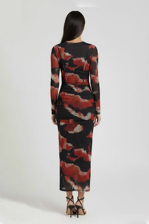 Crimson Cloud Mesh Bodycon Maxi Dress - 94915