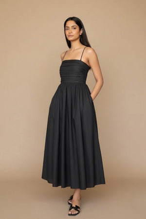 Midnight Muse Ruched Bodice Midi Dress- 96431