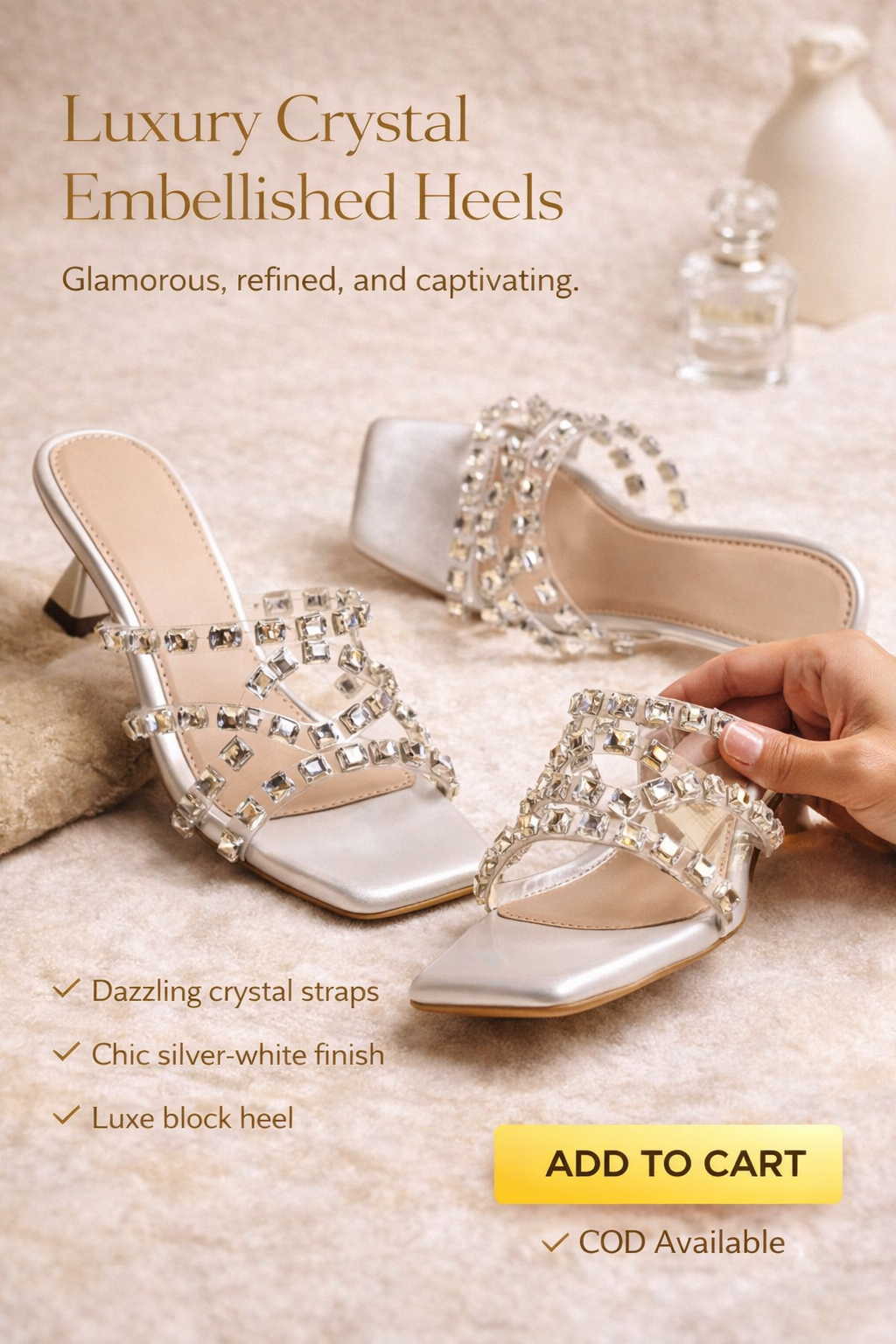 Crystal-embellished transparent straps for a refined sparkle