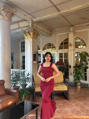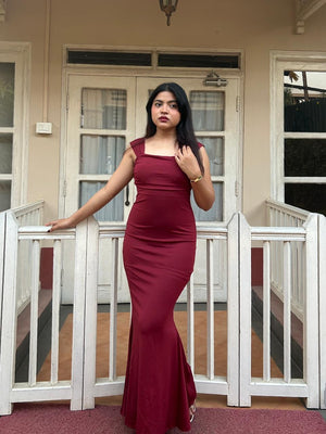 Burgundy Fit-and-Flare Maxi Dress - 120475