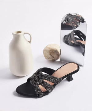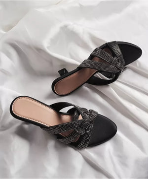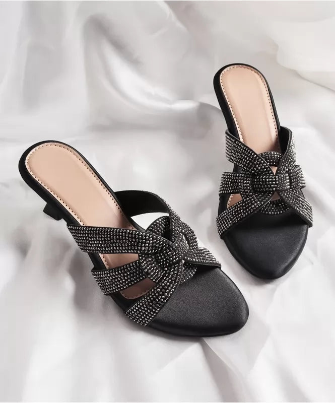 Crystal-Trimmed Thong Heels – Midnight Black - 131642