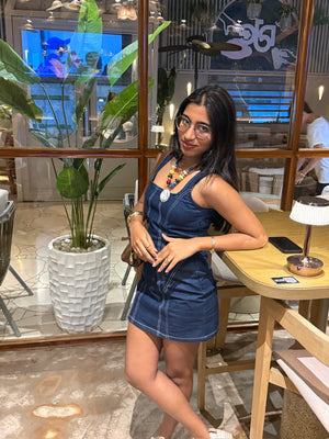 Denim Sleeveless Mini Dress- 125312