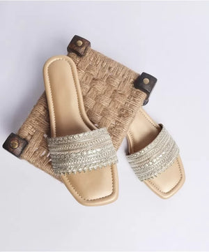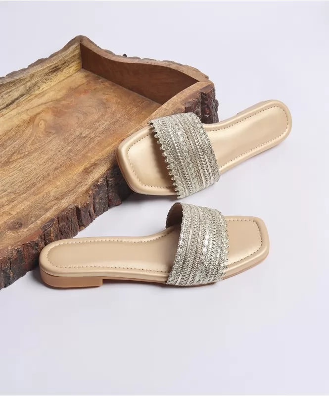 Grace meets tradition in these Ethnic Lace Flats, designed to elevate everyday ethnic and fusion looks with effortless elegance. Featuring an intricately woven lace strap with delicate metallic accents, this pair blends artisanal charm with modern comfort—perfect for festive days, casual gatherings, or elegant daily wear.