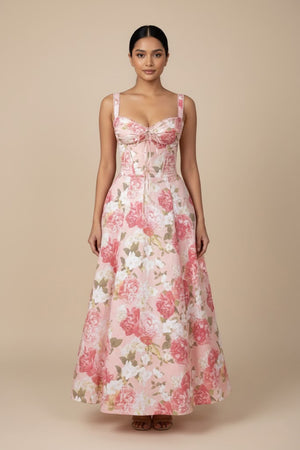 Floral Printed Sweetheart Neck Maxi Dress- 117027