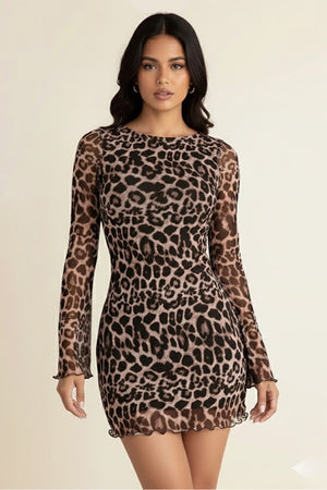 Leopard Printed Bell Sleeve Mini Dress - 126544