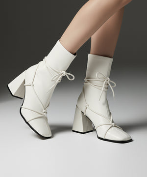 Premium - High tie up white boot for women