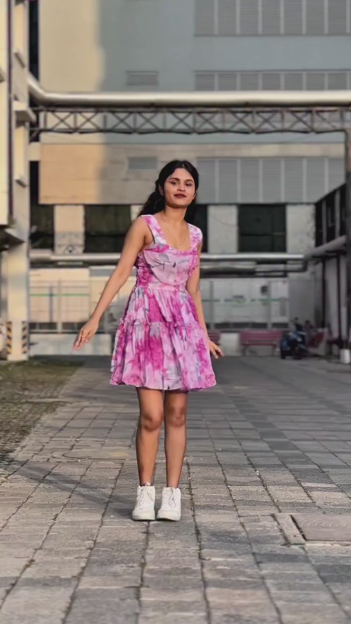 Printed Square Neck Mini Dress- 104670