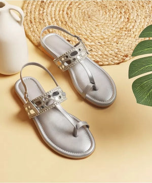 Silver Kolhapuri-Style Embellished Flats