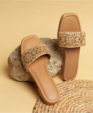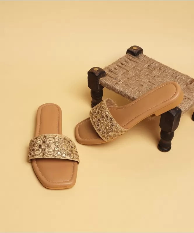 Sundara Handcrafted Gold-Embellished Slides - 131610