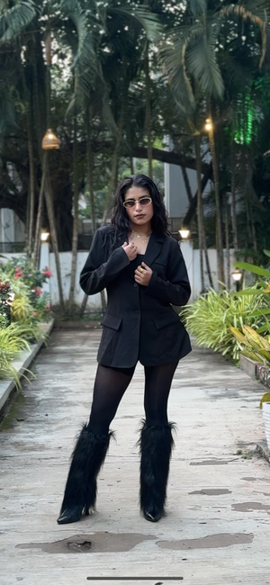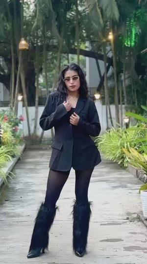 Style: Black fur-lined boots designed for women — perfect for winter or cold-weather wear.