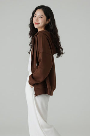 roduct Description - Adjustable Drawstring Hood . Full front zip closure for easy layering. Drop Shoulder design and wide sleeves for a slouchy fit. Ribbed Cuffs and Hem. Features subtle seam detailing near the shoulder/chest.